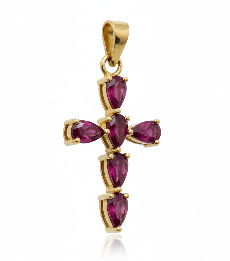 Dije Cruz Lagrima En Rubi